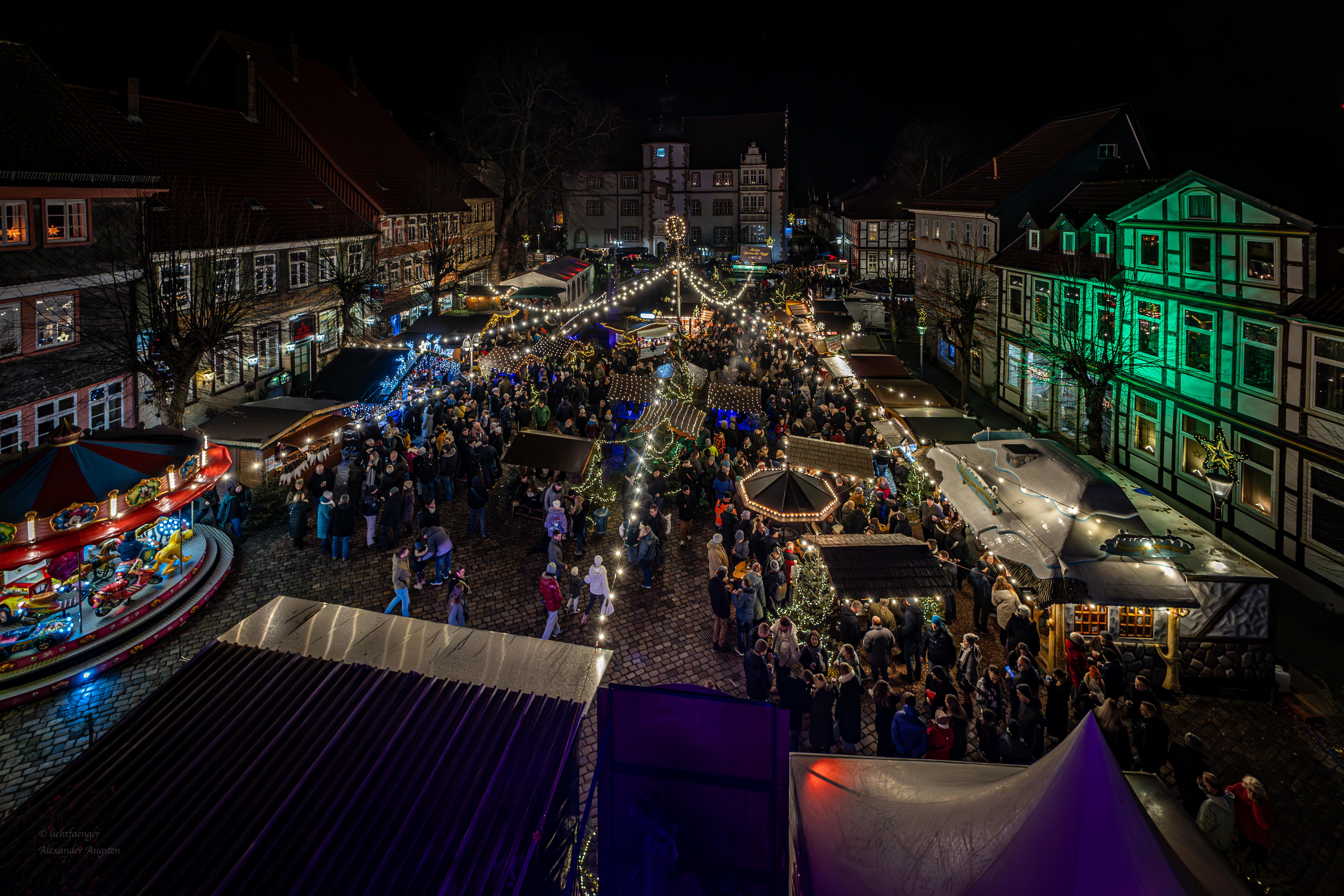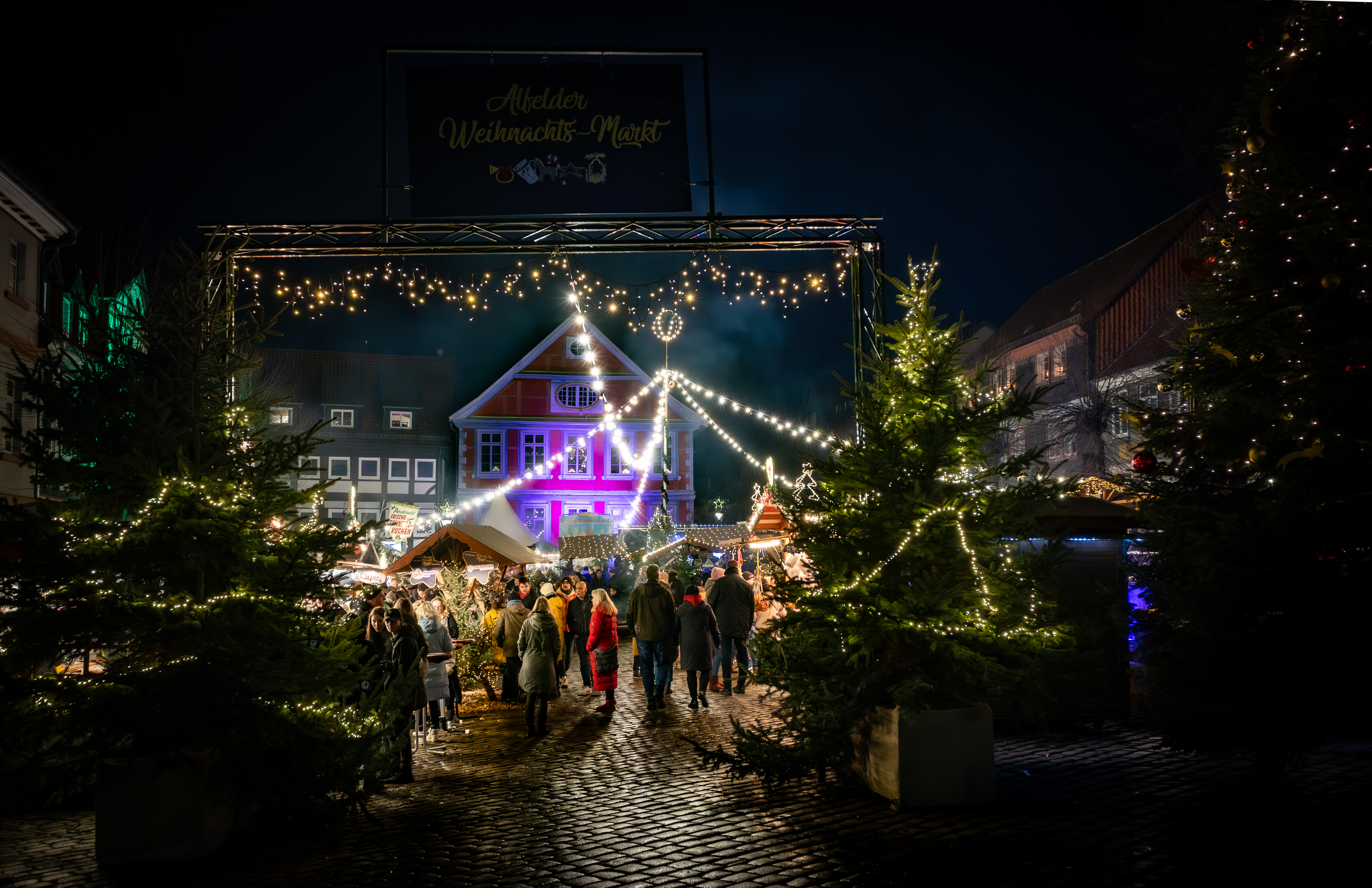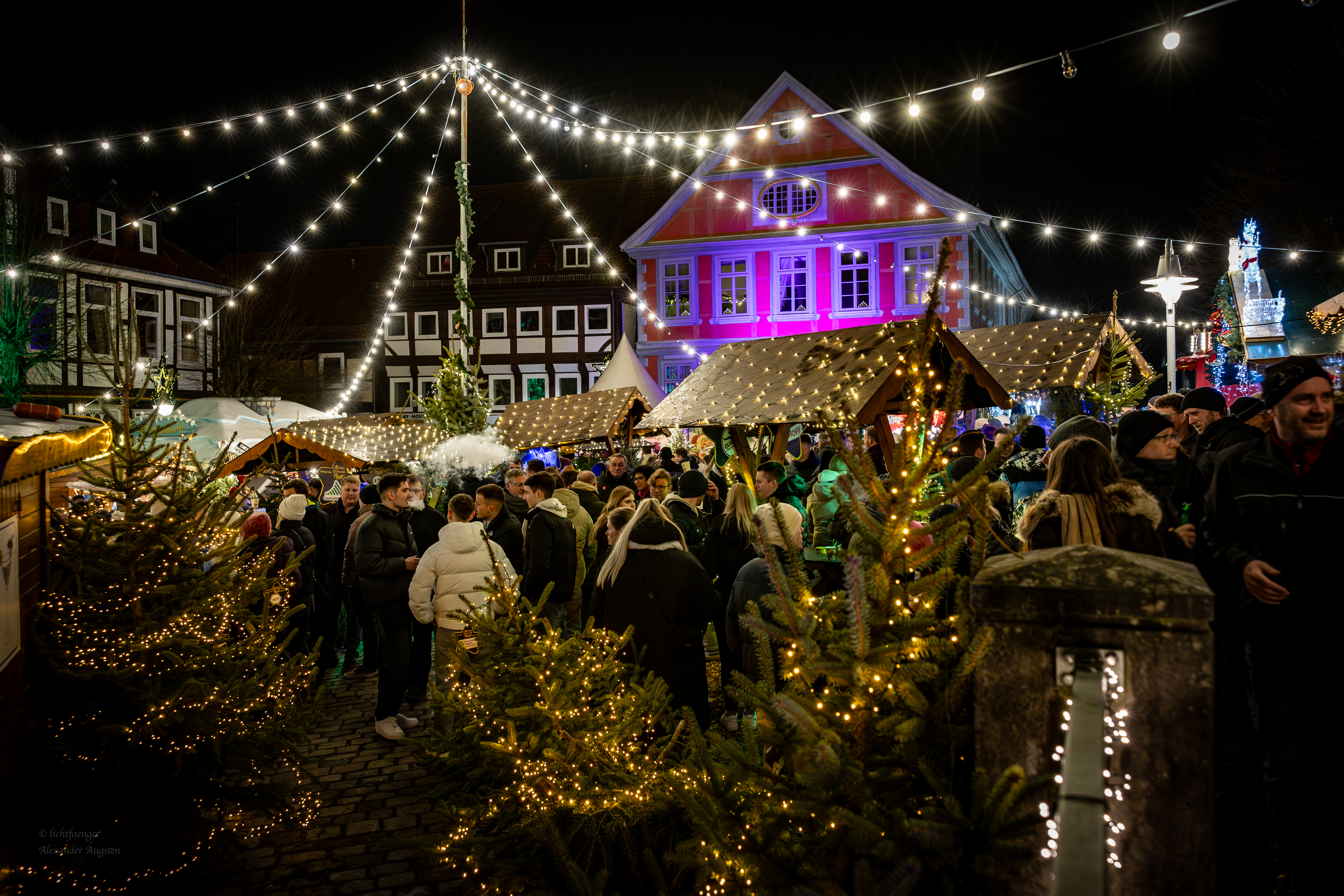 Die Alfelder Altstadt erstrahlt im Glanz festlicher Lichter und die Einzelhandelsgeschäfte und Märkte präsentieren sich mit vielfältigen, geschmackvollen und einfallsreichen Ideen. Rund um und auf dem Weihnachtsmarkt gibt es ein vielfältiges Programm mit Musik, Stadtführungen, Bastelnachmittage, Turmbesteigungen, Lesungen und Stockbrotbacken. Auch der Weihnachtsmann wird an vielen Tagen zu Besuch sein. Zum dritten Mal gibt es eine Eisstockbahn auf dem Markt, allerdings ist diese bereits nahezu ausgebucht. Es lohnt sich dennoch, bei Interesse auf die Buchungsseite zu schauen, manchmal wird ja noch ein Termin storniert.